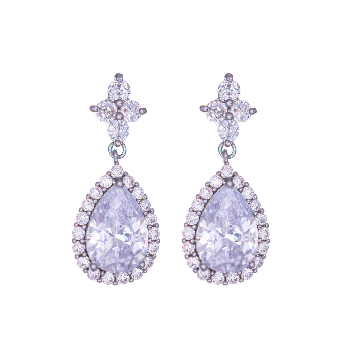 Eleganta och iögonfallande festörhängen som kombinerar en klassisk droppform med en dekorativ övre del. Den övre delen av örhänget består av fyra runda zirkonia-stenar som skapar ett blommigt och elegant utseende.