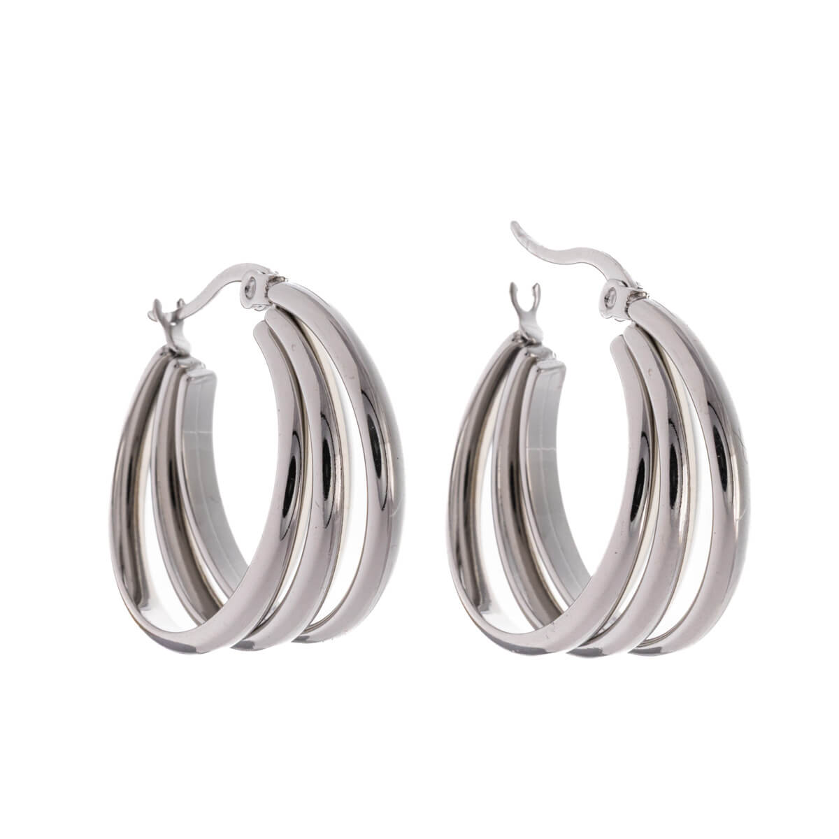Örhängen i stål med flera rader är snygga och hållbara. Spärrlåset är lätt att öppna och stänga. Låsmekanismen är också lätt att dra åt. Produkten är helt tillverkad av stål.