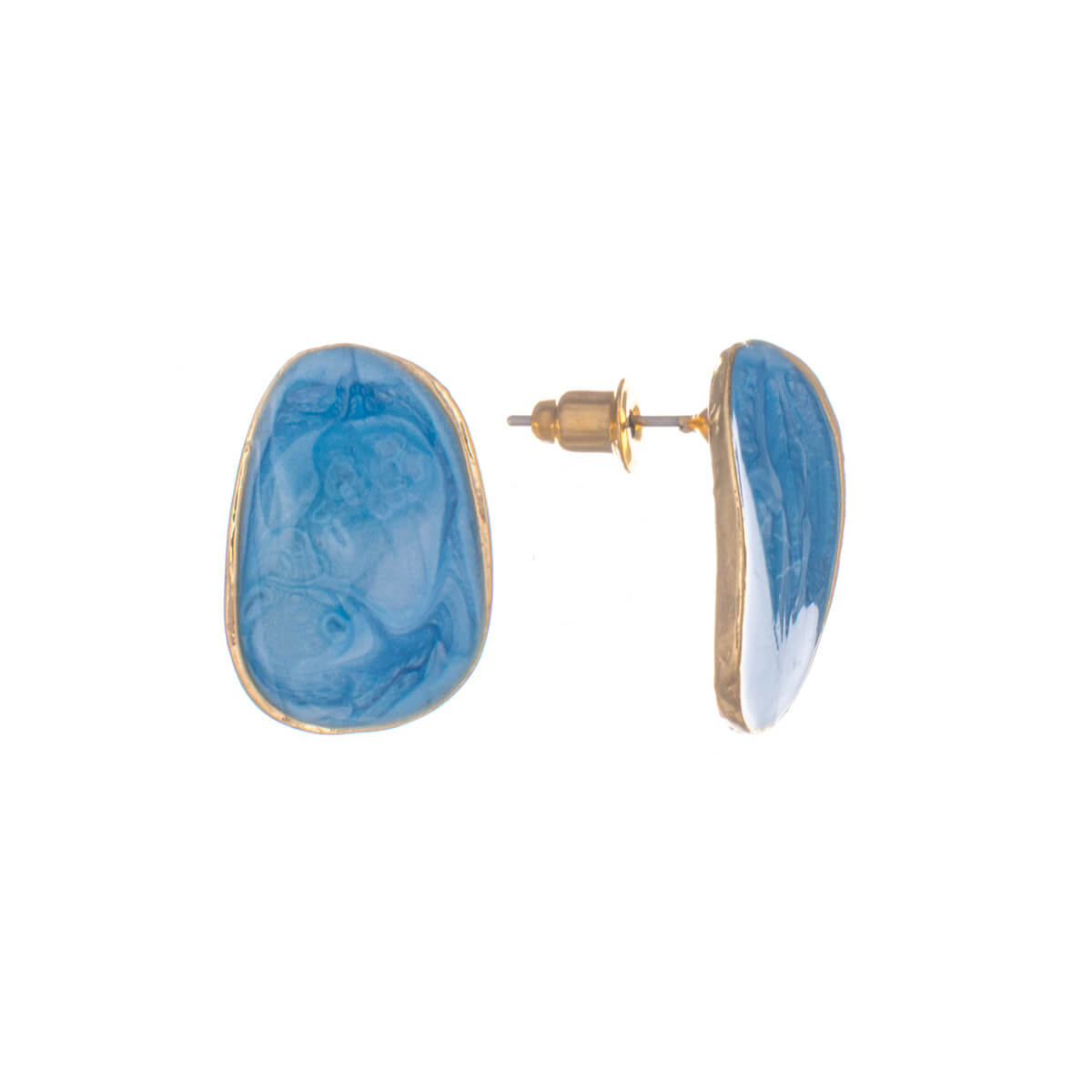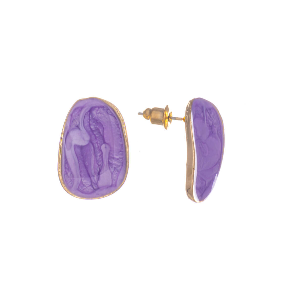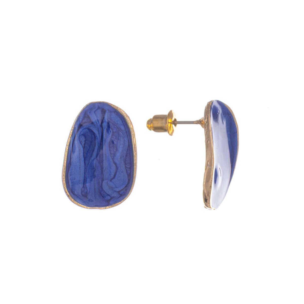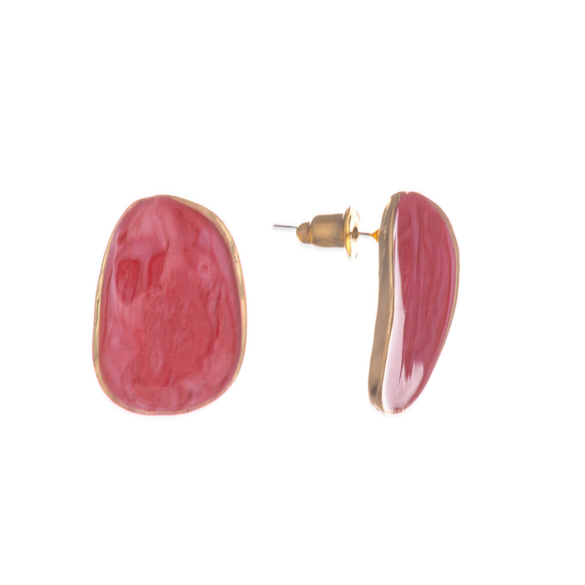Färgglada ovala örhängen som sätter färg på din outfit. Den vackra, livfulla färgmassan framhävs starkt av den guldfärgade ramen.