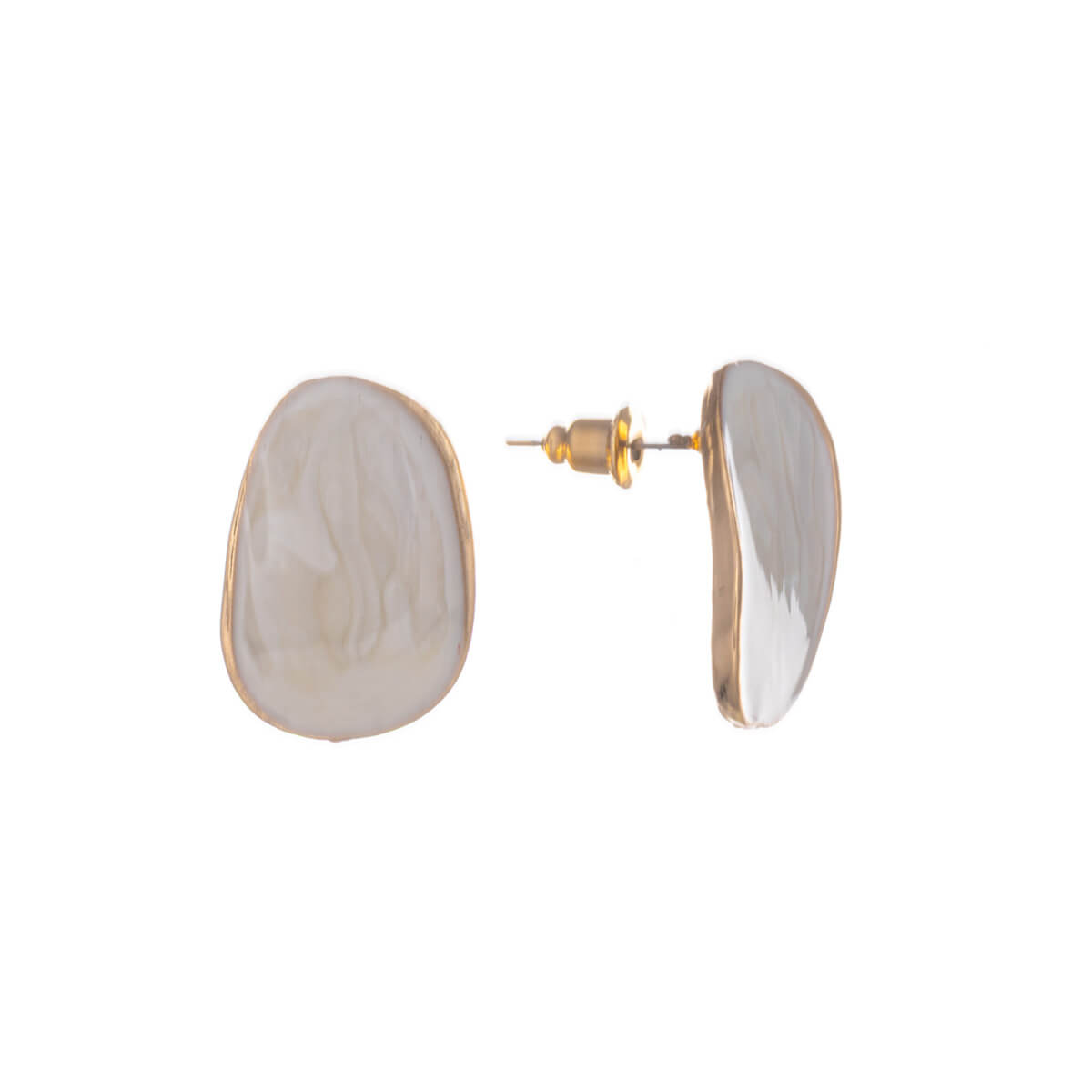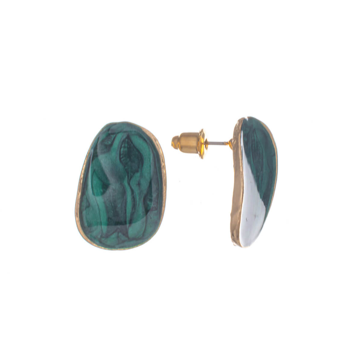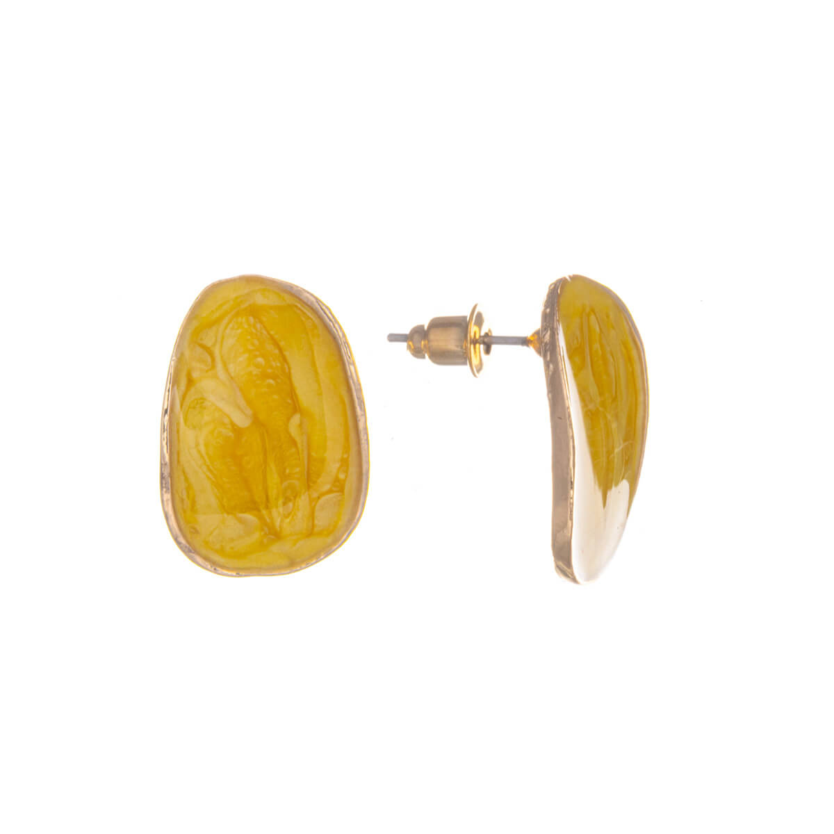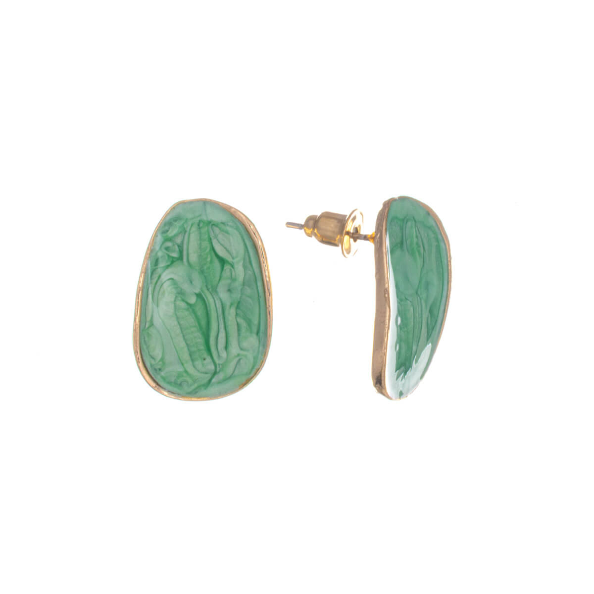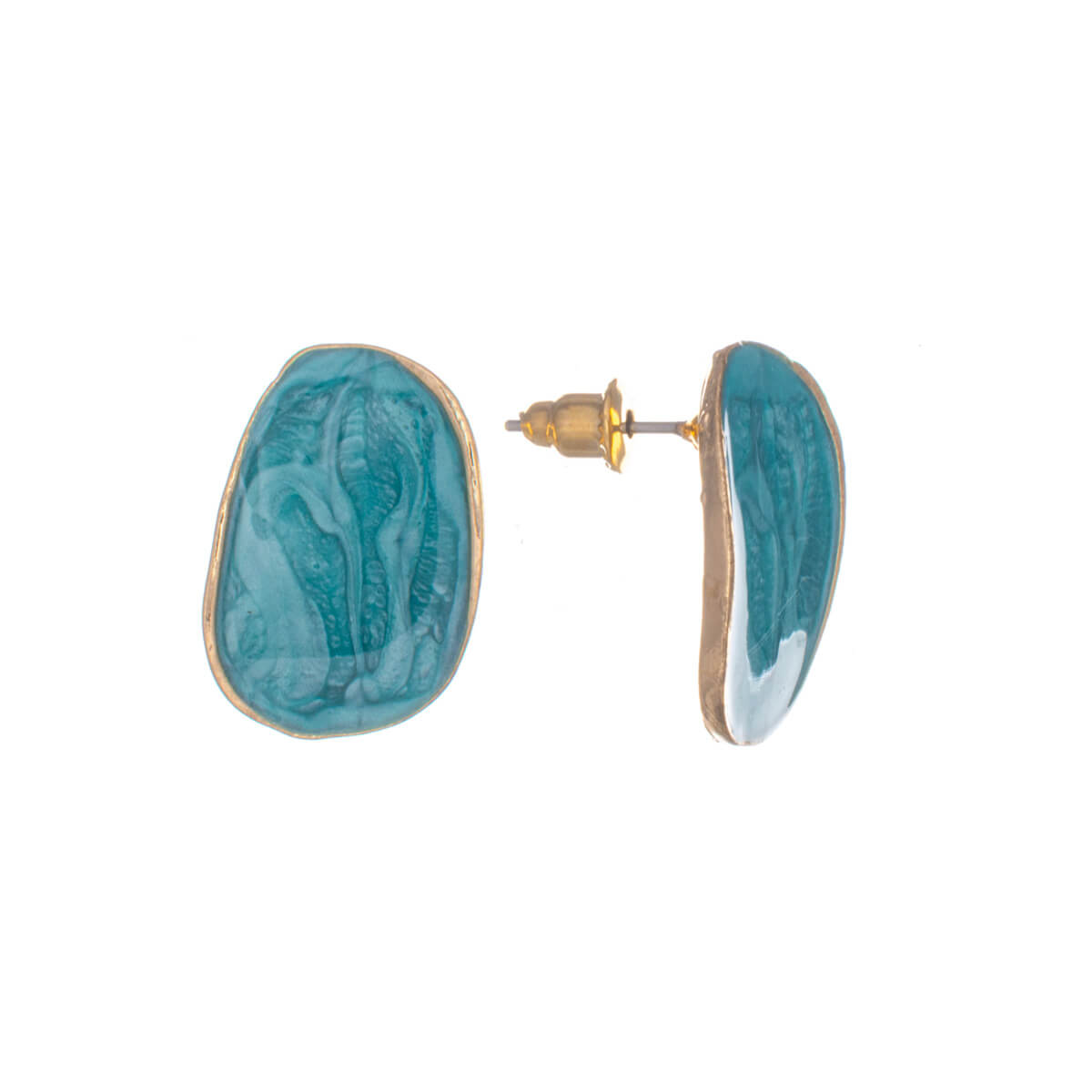 Färgglada ovala örhängen som sätter färg på din outfit. Den vackra, livfulla färgmassan framhävs starkt av den guldfärgade ramen.