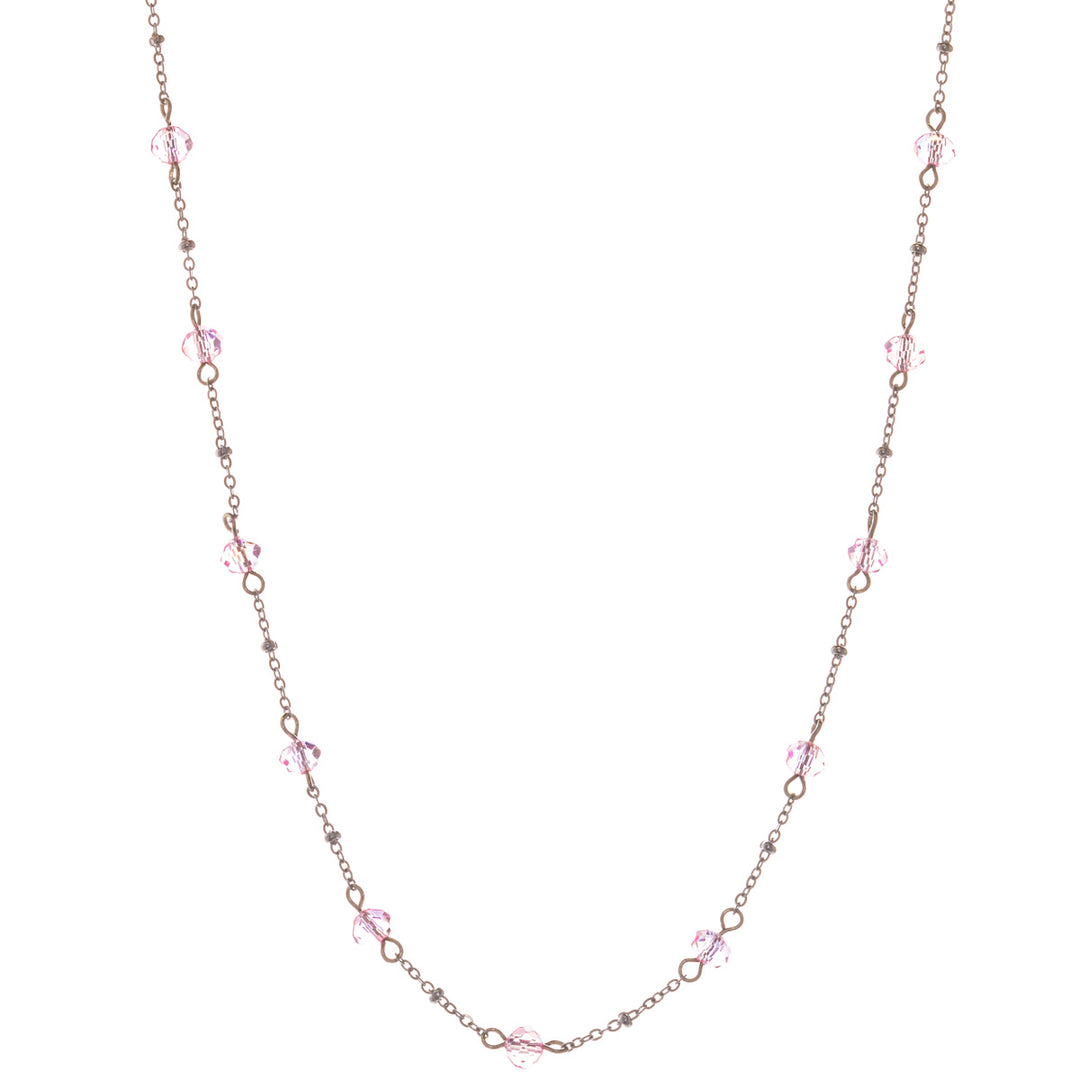 Fasade glaspärlor pryder en tunn stålkedja. Halsbandet är av hög kvalitet och hållbart. Glaset och kirurgstålet kommer inte att slitas ut vid användning.