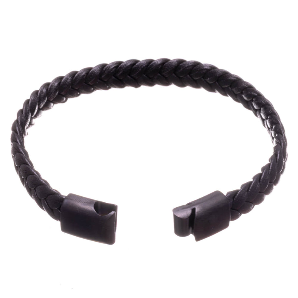 SVART FLÄTTAT LÄDERARMBAND FÖR HERRAR MED MAGNETISK LÅS