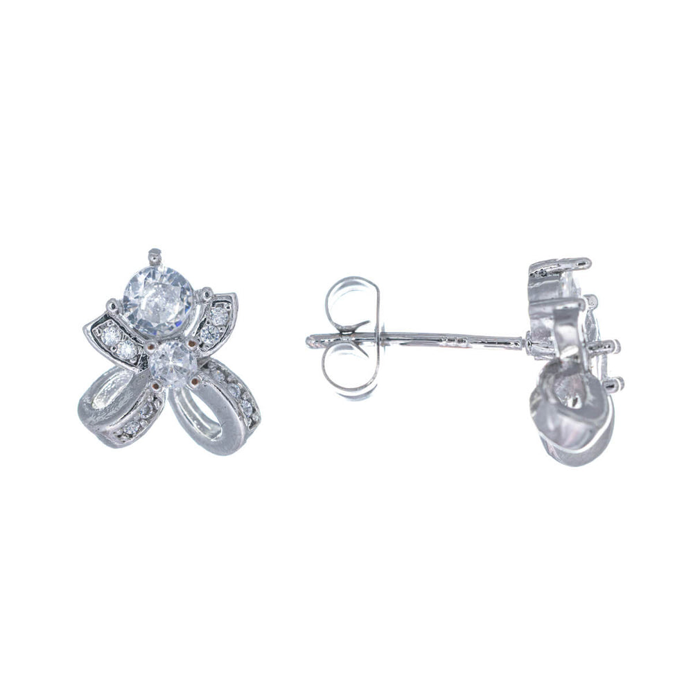 Dessa fina örhängen med rosett är en vacker, glittrande detalj. I denna modell är örhängets krok tillverkad av kirurgiskt stål och rosetten av belagd mässing.