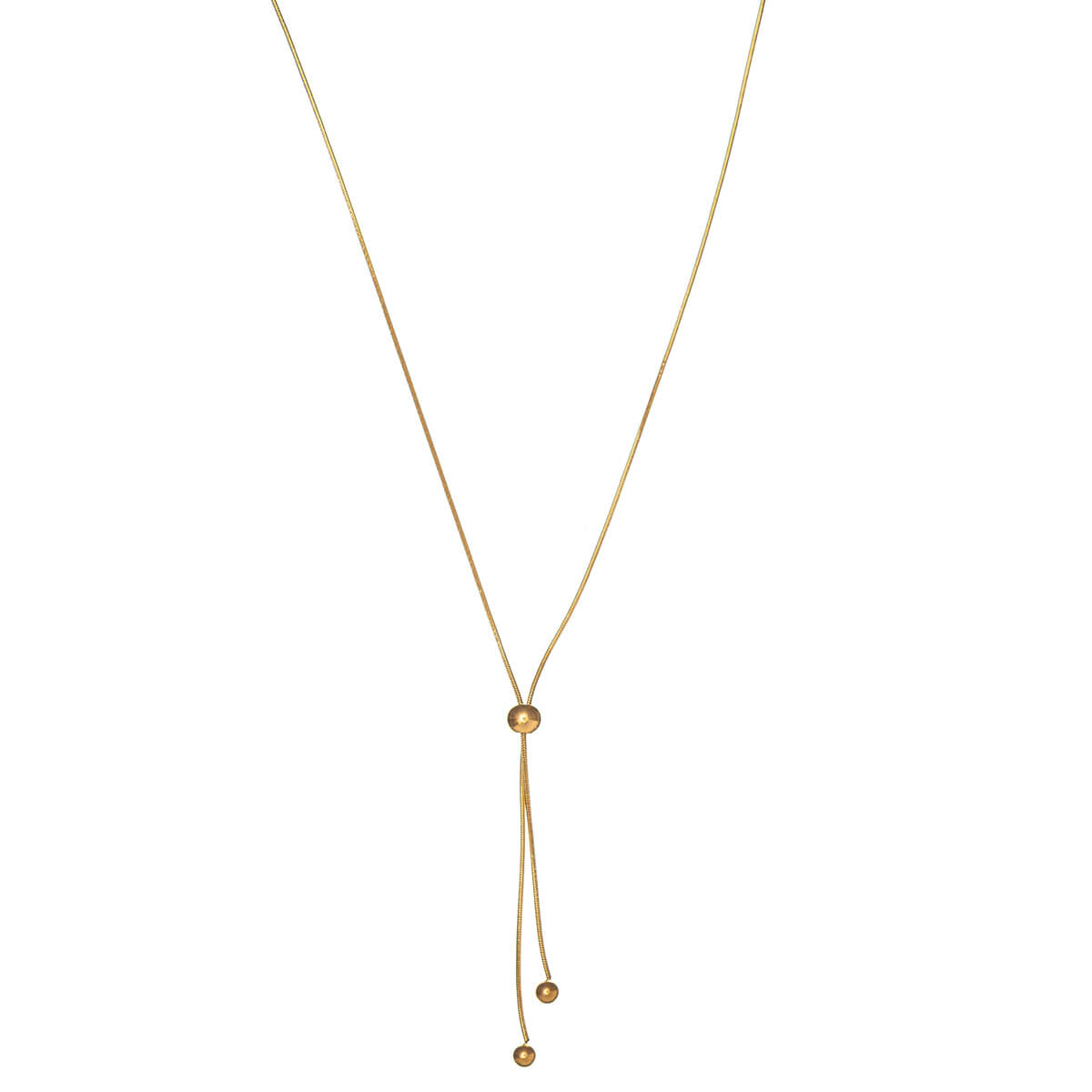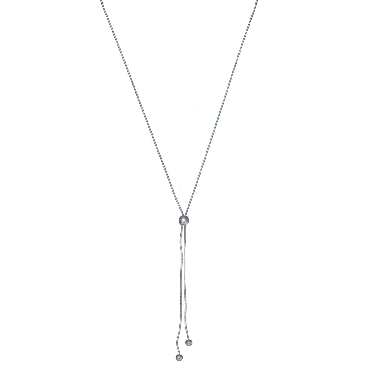 Det eleganta Y-formade halsbandet är tillverkat av stål. Det vattenresistenta halsbandet är elegant och enkelt. Den tunna kedjan löper genom den stora pärlan, så att kedjans längd lätt kan justeras genom att dra i den. Halsbandet är helt tillverkat av kirurgiskt stål.
